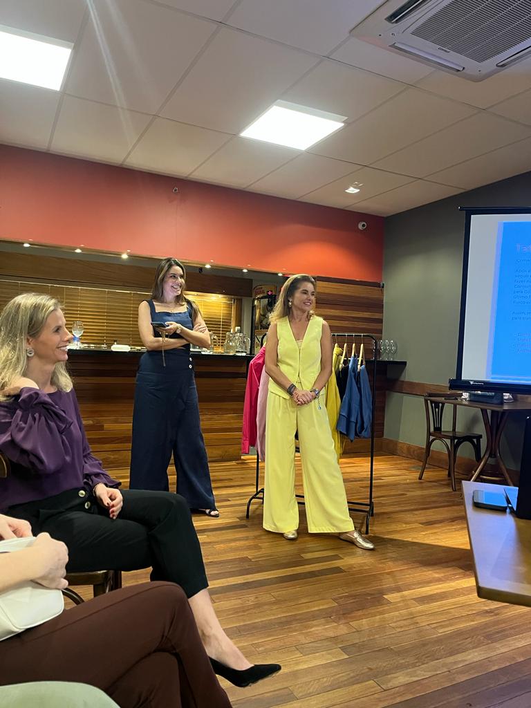 Aproveitando o espaço do bate-papo sobre moda, cor e estilo com a consultora de imagem Tatiana Jaeger (@inneryoupoa) e mediação pela confreira Juliana Aragonez, nossas associadas reforçaram a corrente do bem no apoio às vítimas das enchentes no Rio Grande do Sul.