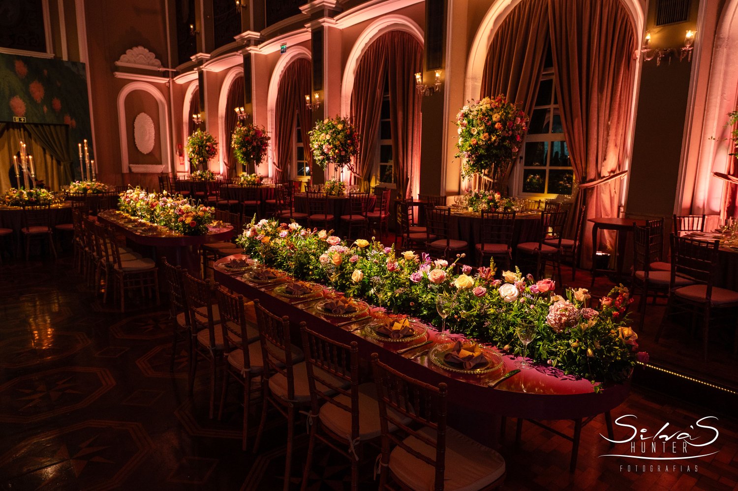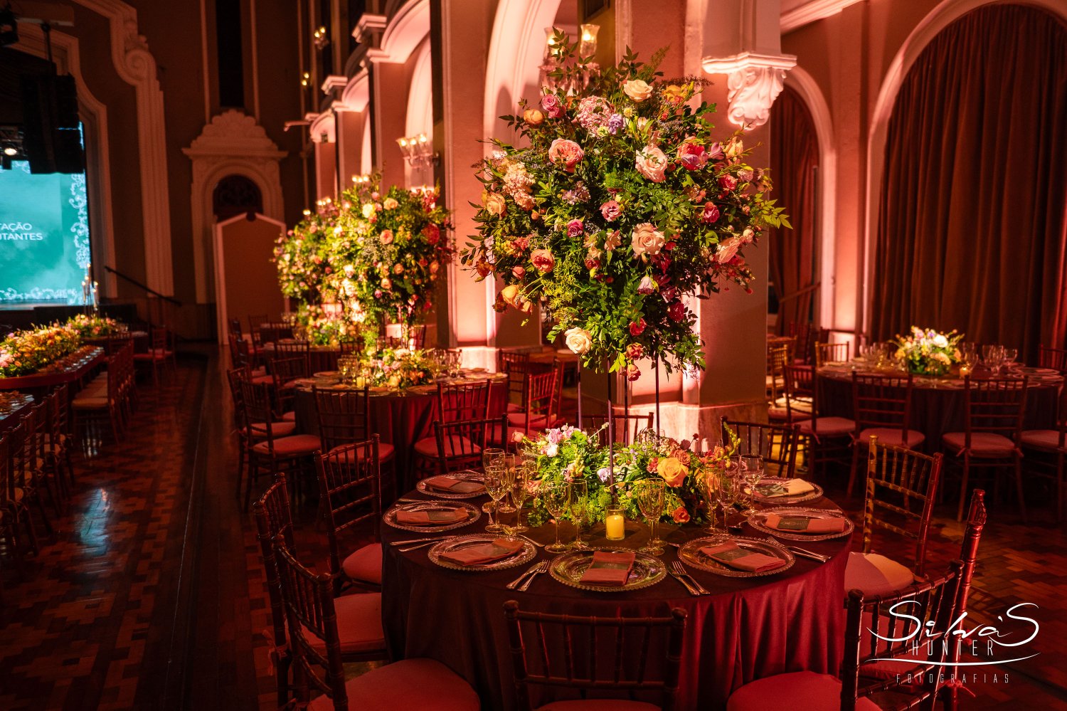 Acessado por um luxuoso hall de entrada, o Salão Leopoldina é o ápice da elegância e da tradição na Sede Marquês do Herval. Maior e mais sofisticado espaço do Clube, sua arquitetura primorosa revela-se em cada detalhe, do piso refinado aos majestosos lustres de cristal que iluminam o ambiente com um brilho singular.